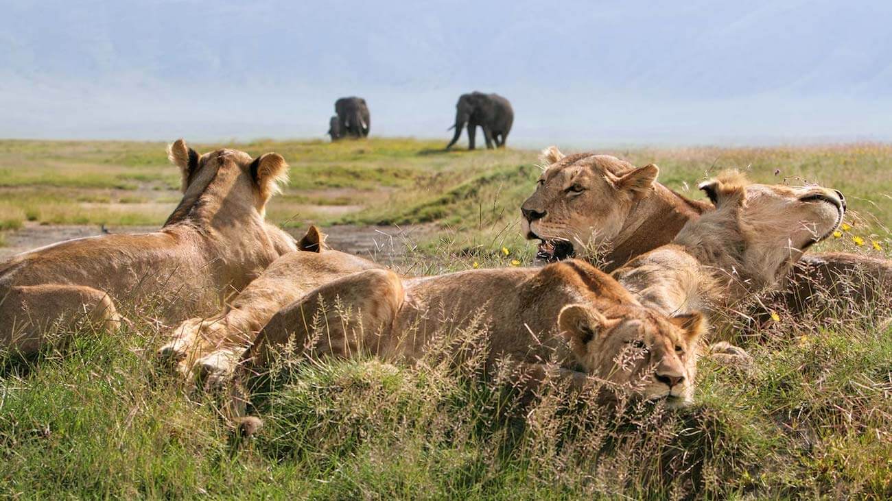 The floor of the Ngorongoro Crater is teeming with wildlife, including large populations of lions, elephants, wildebeest, buffalo, and zebras. The compact size of the crater makes it ideal for close-up wildlife encounters.